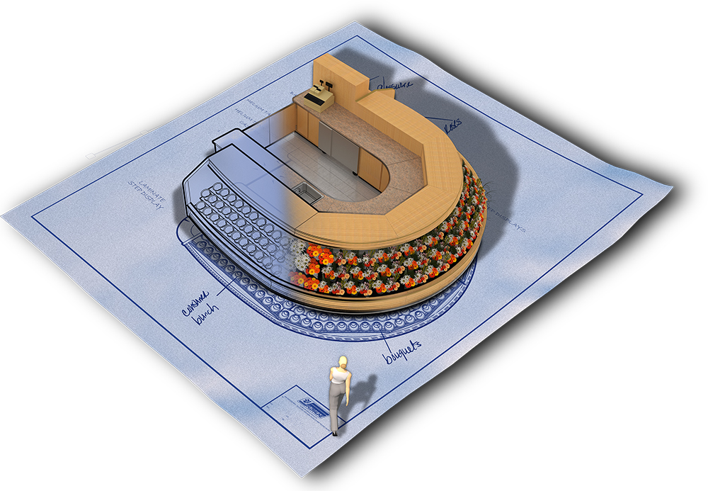 Blue print illustration to convey a turn key, design to build capability for a manufacturing company.