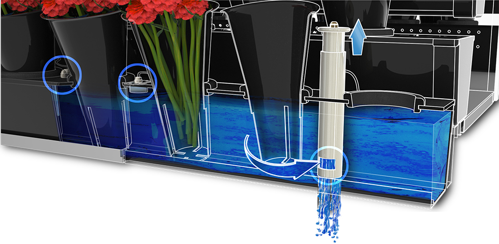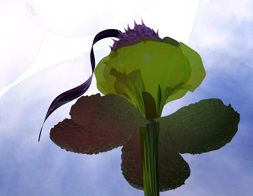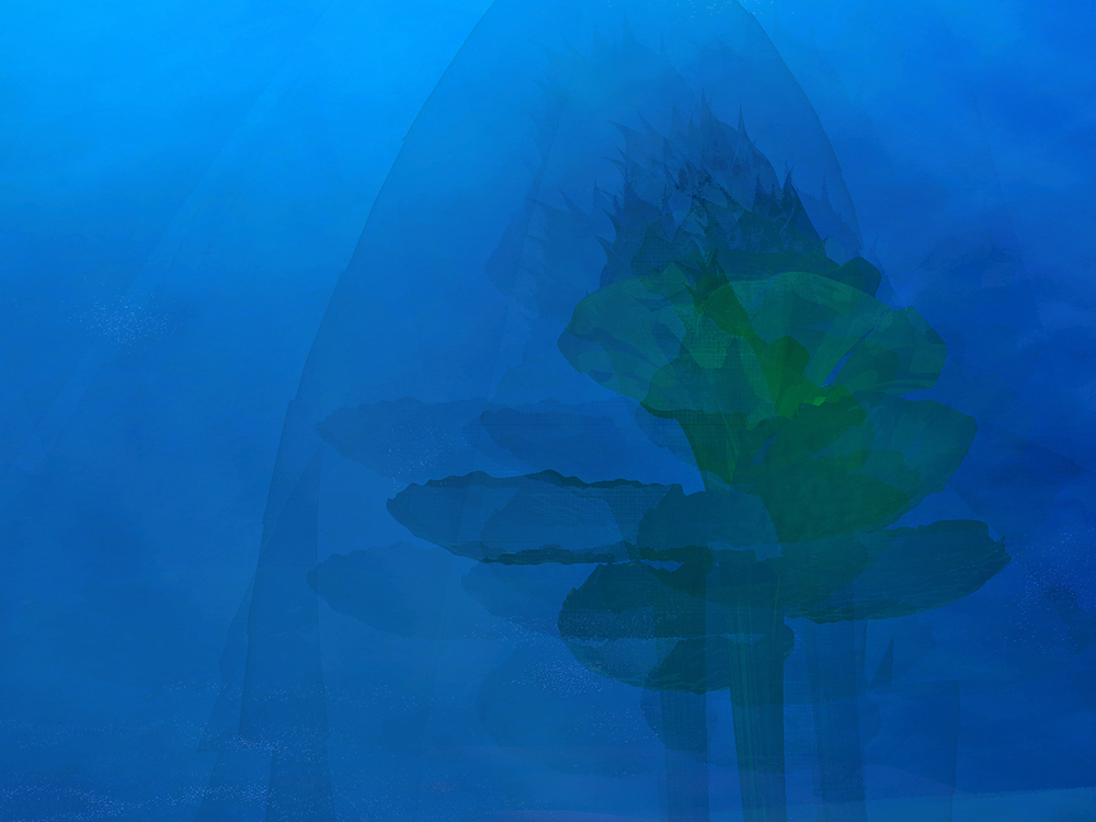 A flower made with cabbage leaves and asparagus buds. The second image of it was made placing the camera in a water shader.