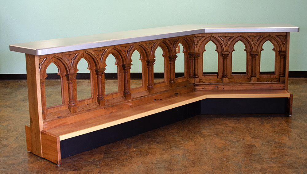 Also a manicure nail bar for Rock A Betty Salon. The upright section started life as a church communion rail. After restoration, a base and top were added.